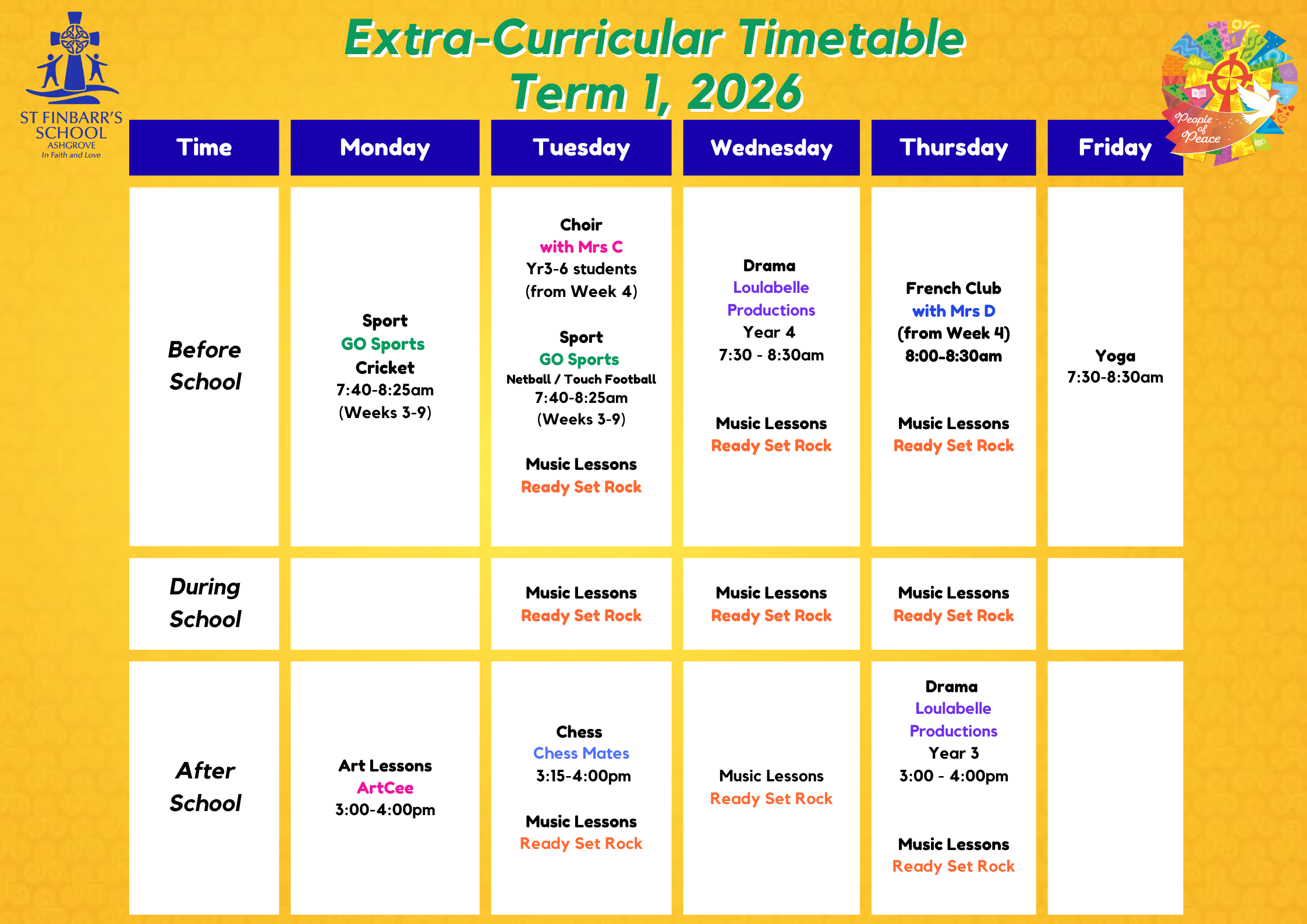 Ready Set Rock will be providing instrumental music lessons, Rock Band, Guitar Ensemble at St Finbarr's.